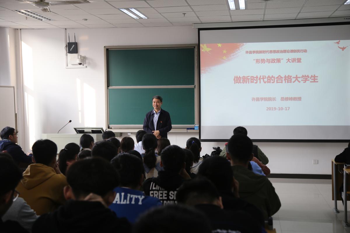 2019年10月17日上午,在永利官网E-506教室,yL23411永利官网登录19201学期“形势与政策”大讲堂第一期专题讲座如期举行,讲座由yL23411永利官网登录院长岳修峰教授主讲。岳修峰教授以《做新时代的合格大学生》为题,给学生们上了一堂精彩的思政课。