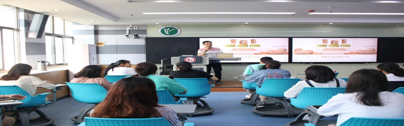 在培训课堂上,胡彬老师针对学生提出的具体问题进行有针对性的指导。从声调运用的切入到吐字系统、发声系统的运用,理论结合实践,胡彬老师用字正腔圆,清晰圆润的普通话指出错误与正确发声方式,只有明白错误发音是如何产生的才能更好的规范正确的发音。围绕着普通话易出现的问题进行重点讲解,结合幽默风趣的语言表达吸引学生们的注意力,根据不同的发声问题,列举不同的错误发声,以及纠正正确发音方式。在语言表达训练中,学生也积极的与老师互动,通过面对面交流发现错误,指正错误,感受普通话的魅力。