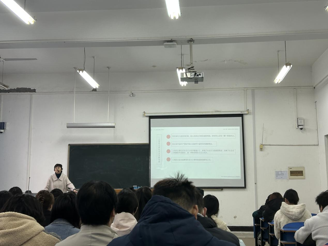 调研组专家采取听、评、谈、议等方式,深入思政课课堂,先后听取了思政课教师陈会娟讲授的习近平新时代中国特色社会主义思想概论课中“发展全过程人民民主”和李大旗讲授的马克思主义基本原理课中“价值与价值的基本特性”。