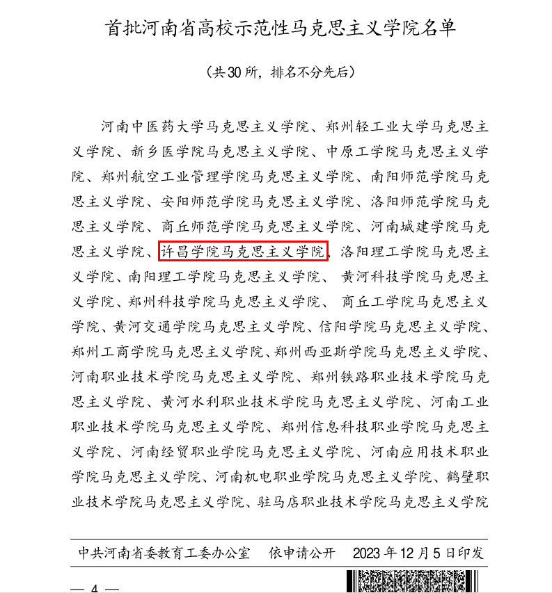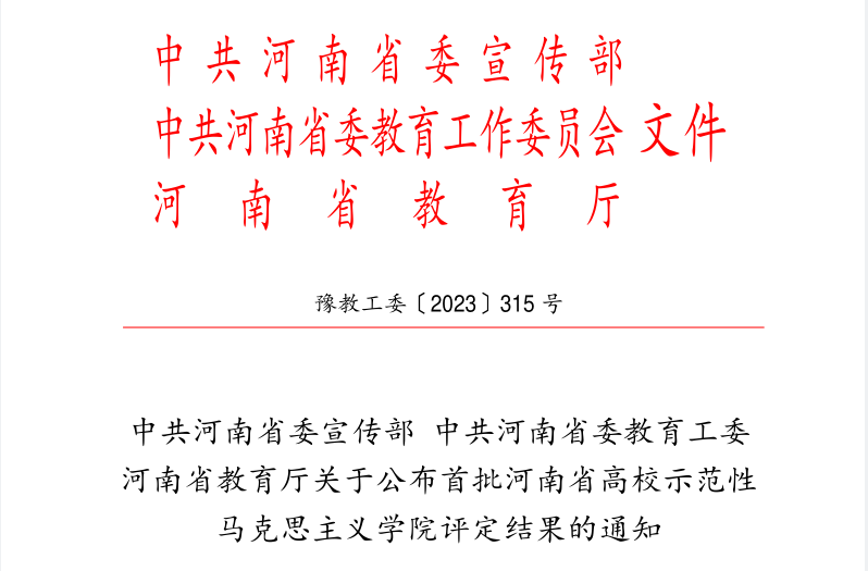 近日,中共河南省委宣传部、中共河南省委教育工委、河南省教育厅印发《关于公布首批河南省高校示范性yL23411永利官网登录评定结果的通知》(豫教工委〔2023〕315号),永利官网yL23411永利官网登录成功入选首批河南省高校示范性yL23411永利官网登录,这是永利官网高质量发展的一项重要成果。