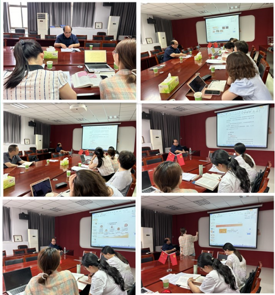 首先,孙老师从学情分析报告、教案撰写、创新课件、说课课件等四个方面一一解答参赛教师的问题和疑惑;其次,孙老师依次查看与会教师的参赛电子版和纸质版材料,边看边给出应该注意的注意事项和改进措施;最后,孙老师又从教学比赛材料准备的基本原则、教学比赛材料具体内容的准备、教学比赛专题内容的总体设计等方面给与会教师分享了思政课教学展示竞赛材料的准备过程及体会。