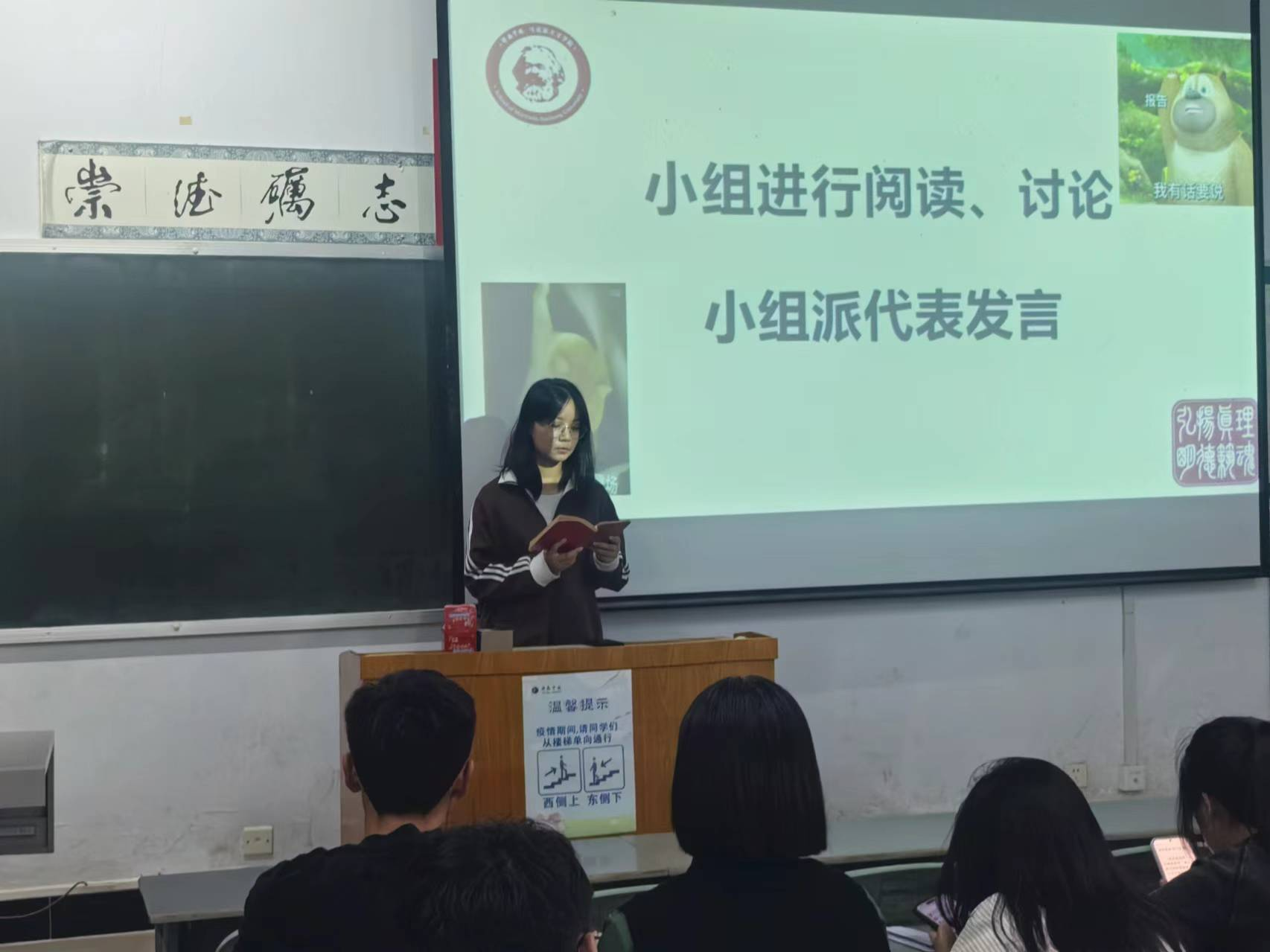 本次读书会大一至大三年级选取的书目分别为:毛泽东的《星星之火,可以燎原》《中国的红色政权为什么能够存在?》和马克思的著作《<政治经济学批判>序言》。在读书会开始之前同学们已自行通过借阅书籍进行阅读,并写下读后感悟和读书笔记。在读书会上,同学们积极主动与大家分享了自己的一些感悟和见解,通过结合自身学习生活实际,表达了自己的思考和所得。