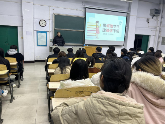 活动中,副院长林云飞强调了诚信考试的重要性,以及学校对考试违纪相关处理规定和学生考试作弊的原因和心理。并对同学们提出了具体要求:一是认真复习,积极备考。要科学规划和合理制定复习计划,及时查缺补漏,积极巩固深化,做好考前准备。二是严守考风考纪,诚信应考。希望同学们将诚信牢记于心、实践于行,严格遵守考试纪律,打消作弊心理,服从监考人员管理,维护考试秩序。