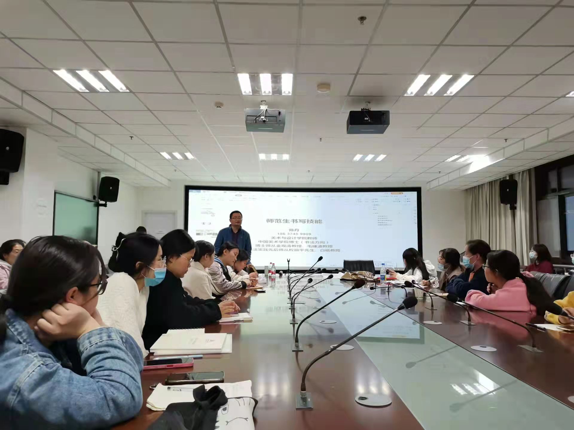 11月4日,在文科综合楼727召开书法与简笔画培训会议,在会议上,韩亚娟老师向学生介绍了“什么是书法”“为什么学习书法,怎样学习书法”“毛笔书法与硬笔书法的不同”。银爱琴老师介绍了简笔画的创作步骤与技巧。通过老师的讲解,同学们更加深刻的了解了作为师范生加强自身修养的重要性,激发了学生练习好三笔字与简笔画的热情。学生表示在以后的学习中一定会勤加练习,提高自己的修养。