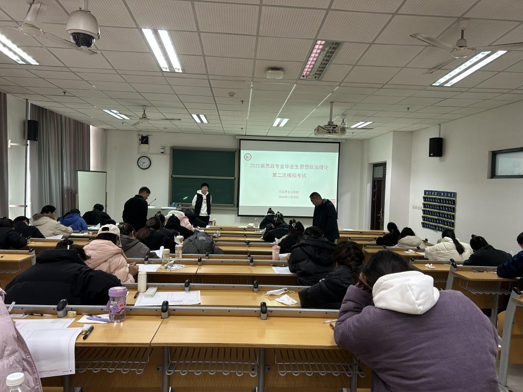 为帮助2025届思政专业毕业生进一步适应考研流程,提高应试技巧和心理素质,实现“备考——实战”的平稳过渡,近日,yL23411永利官网登录组织开展了2025届毕业生第二次考研模拟考试活动,活动由理论考试、试卷评阅、试卷讲评三个环节组成,报考研究生的46名同学全部参加了本次活动。