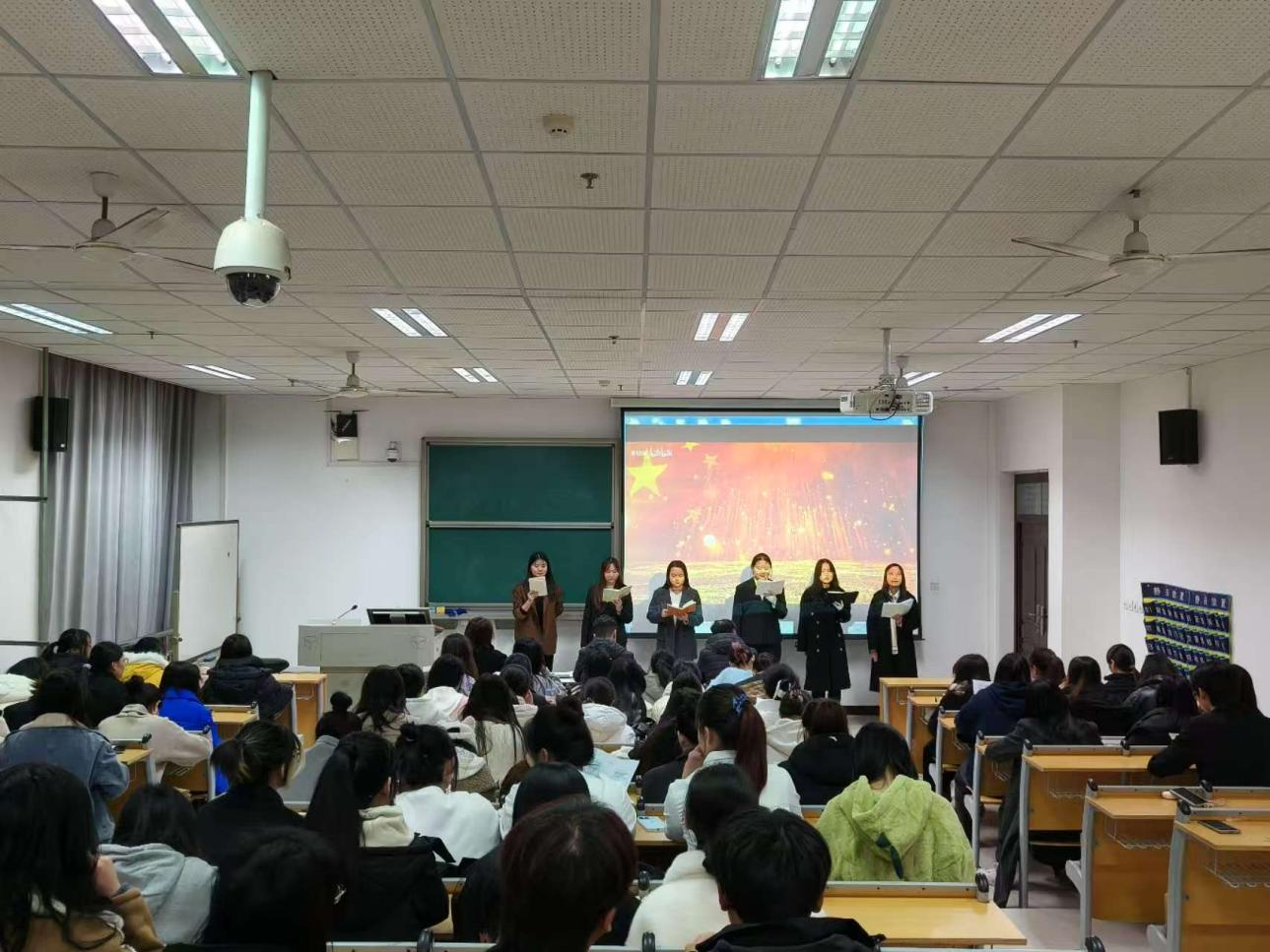 2024年12月2日,yL23411永利官网登录于文综楼304举办以“歌颂传统文化,弘扬爱国精神”为主题的诗歌朗诵比赛,比赛邀请菅强副院长、杨亚峰老师、樊晓歌老师担任评委,2023级86名学生积极参加。