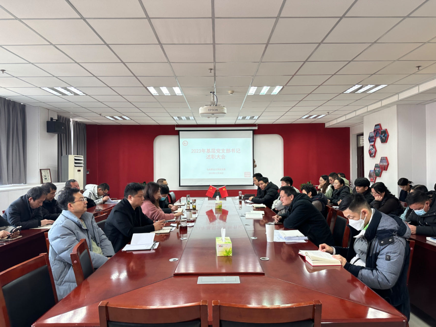 会上,四个教工党支部和一个学生党支部书记依次向大会述职,总结2023年度所在党支部开展的重点工作、取得的主要成绩、存在的不足以及下步打算,党委书记谢依楠对述职情况逐一点评。与会人员根据述职情况,结合平时对各党支部书记工作情况的了解,对每位述职人员的述职情况分别进行评分。